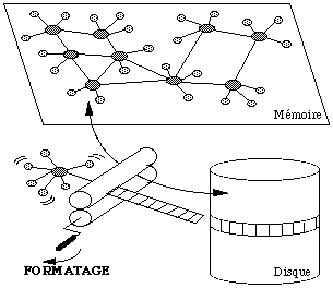 De façon générale, les structures de données utilisées sont de type graphe d'objets interconnectés par de nombreux pointeurs en mémoire. Ces pointeurs vers les objets servent de référence, et sont passé comme paramètres dans les procédures. On souhaite pouvoir stocker sur disque les objets tels qu'ils sont en mémoire, en conservant directement la notion de pointeurs entre objets.