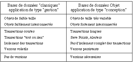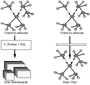 Il y a donc de plus en plus une inadéquation entre les objets complexes manipulés par les langages de programmation modernes (Lisp, Smalltalk, C++), et les possibilités offertes par les bases de données relationelles. On désigne habituellement ce problème sous le terme "d'impedance mismatch" ( See Notion "d'impedance mismatch". ).