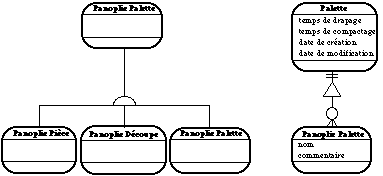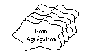 Une agrégation d'objets peut, en reprenant la même notation, être modélisée par l'icône d'un objet à l'intérieur duquel apparaît une série de symboles d'objets empilés. Cela permet par exemple de représenter les ensembles ou listes d'objets ( See Représentation d'une agrégation d'objets. ).
