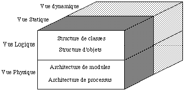 Il n'est pas possible, sauf pour des cas d'école vraiment simples, de représenter de façon unique, c'est-à-dire à l'aide d'un seul diagramme, toute la complexité d'un logiciel. Il est en général nécessaire d'aborder la conception selon plusieurs vues différentes. G. Booch a identifié quatre points de vue fondamentaux : qui sont complémentaires deux à deux :